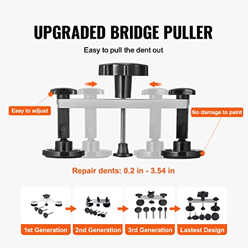 Specification: VEVOR 25 PCS Dent Removal Kit, Auto Body Paintless Dent Removal Tools Kit with Bridge Puller, Puller Tabs, Hot Melt Glue Gun, Glue Sticks, Dent Puller Kit for Auto Body Dents, and Other Metal Surface