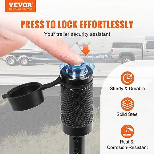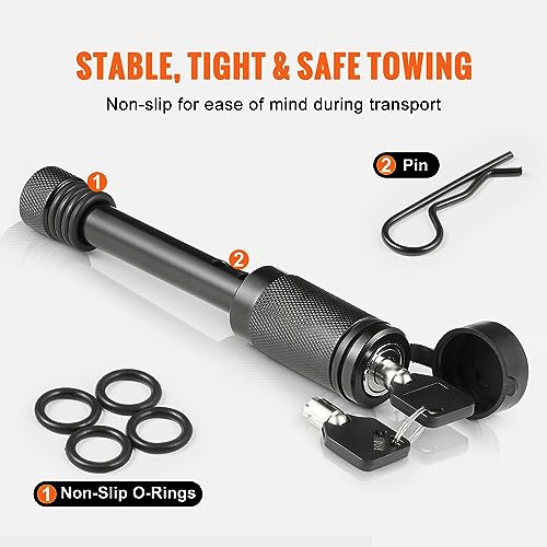 Specification: VEVOR Trailer Hitch Lock, 5/8-inch & 1/4-inch Diameter, 2-Pack Locking Receiver Pin with 4 Keys & 4 O-Rings, Weatherproof Anti-Theft Tow Lockable Pin with Dust, Mud Protection, Fits Truck, Boat, Bike