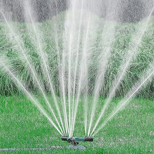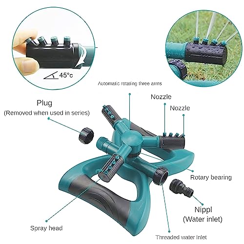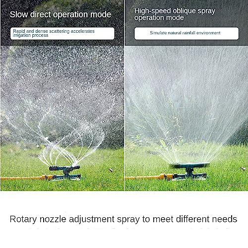 Multipurpose and sprinklers for patios and gardens Durable and stable and easy to move and store 360° rotation Adjustable booms for different irrigation ranges Happy cool times for kids and pets Easy to install: This garden lawn sprinkler is easy to install and use. Connect the automatic garden lawn sprinkler to the water mains. Automatic 360 degree rotation: No other auxiliary power equipment is required, just the pressure of the household water supply can spray water 360 degrees without interruption.