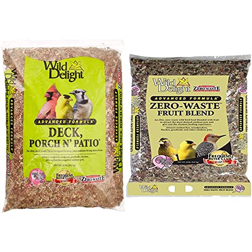 Wild Delight Deck, Porch N’ Patio No Waste Bird Food, 20 lb-(374200),Tan & Zero-Waste Fruit Blend Bird Food, 20 Lb