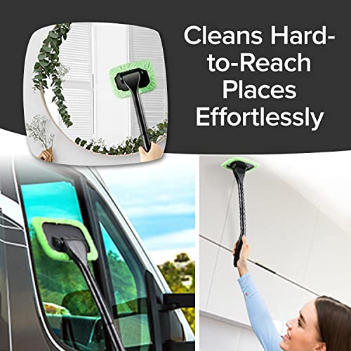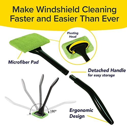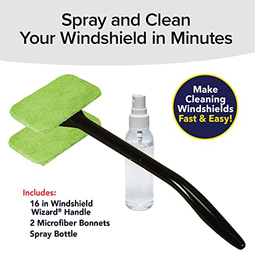 Windshield Wizard Tool, AS-SEEN-ON-TV, Windshields Without Reaching, Microfiber Window Cleaning Device w/Extra Bonnet & Spray Bottle, Long Detachable 16” Handle, Fits in Glovebox, Black