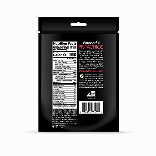 Specification: Wonderful Pistachios In Shell, Sweet Chili Flavored Nuts, 7 Ounce Resealable Bag, Protein Snack, On-the-Go Snack