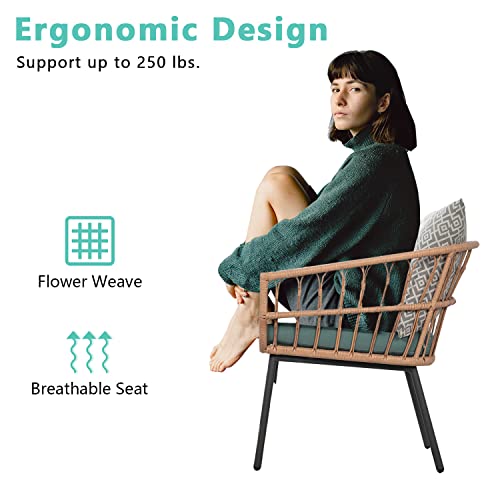 【COMFORTABLE SEAT】Looking to experience outdoor leisure in style and comfort? This patio furniture set fits the bill. Equipped with 2 ultra wide seats, ample seat space allows cozy parent-child time. The fashionable rattan and modern design complements any space, creating a beautiful and luxurious outdoor living space for you and your guests.