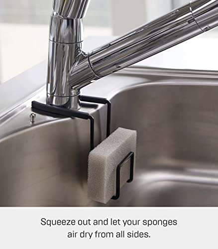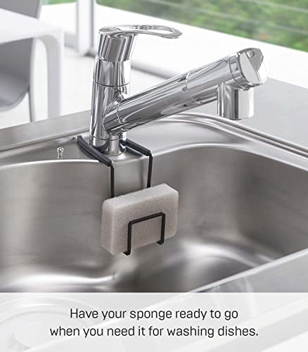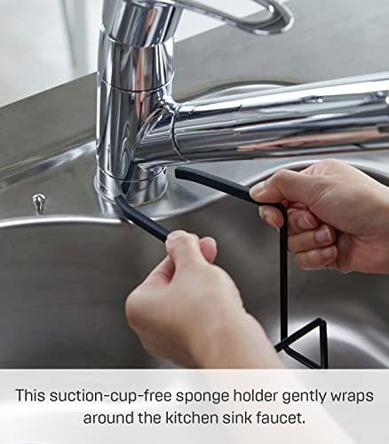 YAMAZAKI home 4389 Faucet-Hanging Sponge Holder-Kitchen Organizer Sink Rack Basket, One Size, Black