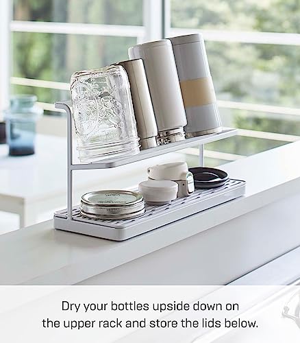YAMAZAKI Home Countertop Two Tier Bottle Drying Rack, Wide Jug Storage Stand with Drainage Tray for Kitchen Counter for Glass Metal Or Plastic Bottles, Steel, No Assembly Req.
