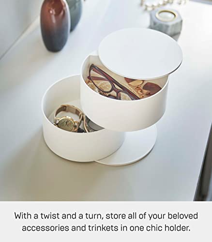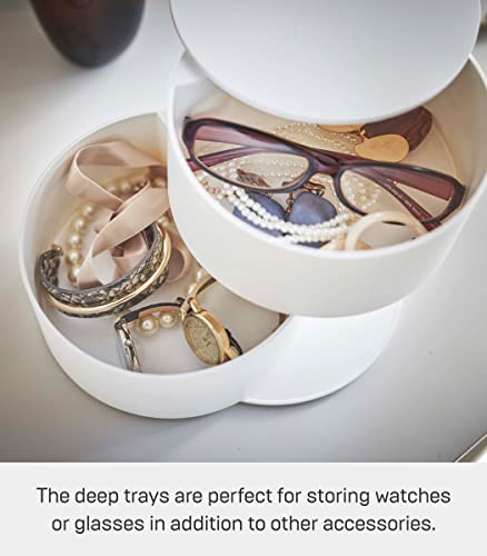 YAMAZAKI Home Tower Stacked Jewelry Box, Rotating Storage Organizer For Accessories Glasses Watches Earrings Display Holder – Abs Plastic, One Size, White