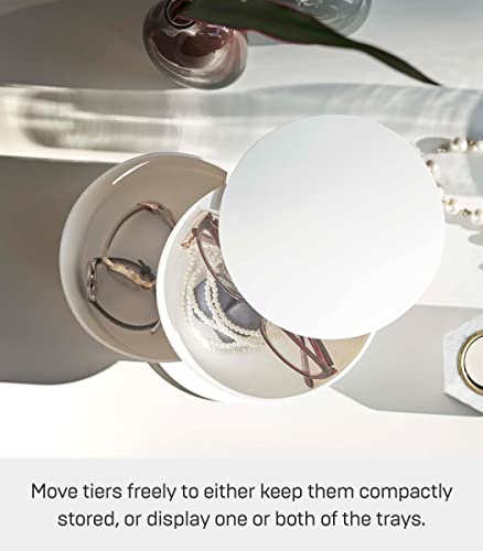 Swivel into style., With a twist and a turn, store all of your beloved accessories and trinkets in one chic holder. Let your baubles shimmer, sparkle, and shine in this two-tiered organizer. The trays are wider and deeper than our multi-tiered versions, allowing more room for larger jewelry pieces, or just more of your best gems., Choose between a lidded version with a sleek, minimal aesthetic especially when closed, and an open design with a wooden accent, perfect for those who prefer easy access to their favorites, or just enjoy having them on display.