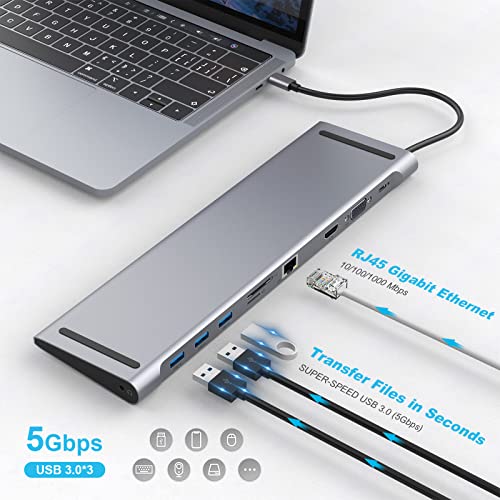 Specification: YLSCI USB C Docking Station for Laptop, USB C Hub 10 in 1 USB C Adapter Docking Station with 4K HDMI & VGA, 3 x USB 3.0, Gigabit Ethernet RJ45 LAN, USB C PD, SD/TF Card Reader, 3.5mm Audio/Mic
